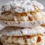 Delightful almond meringue sandwich cookies with a creamy filling, perfect for tea or special occasions.