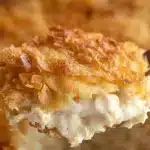 A comforting chicken casserole with crispy hashbrowns and melted cheese, perfect for family dinners.
