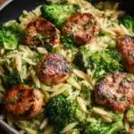 A delightful and healthy one-pan dish combining chicken sausage, broccoli, and orzo pasta, perfect for busy weeknights.