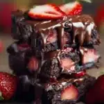 Delicious brownies topped with fresh strawberries and chocolate ganache, combining rich chocolate flavor with fruity sweetness.
