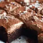 Delicious, fudgy brownies topped with a creamy, chocolate silk layer, perfect for any chocolate lover.