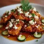 This recipe makes crunchy chicken with a sweet and spicy honey glaze and salty feta. It is quick to make and tastes bold. If you like crispy chicken ideas, try a similar crunchy dish like Crispy Chicken Wonton Tacos for more inspiration.