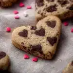 Delicious, buttery heart-shaped cookies loaded with chocolate chips, perfect for gifts or cozy treats.