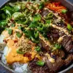 Korean BBQ Steak Rice Bowls with Spicy Cream Sauce are a delicious way to enjoy a mix of savory and spicy flavors. This dish is not only satisfying but also easy to prepare. It brings the taste of Korean BBQ right to your kitchen. Plus, it’s a great option for a quick weeknight dinner or a fun meal with friends.