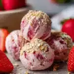 Delicious and healthy strawberry cheesecake protein balls, perfect for a quick snack or post-workout treat.
