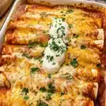 This dish combines tender chicken, gooey cheese, and flavorful enchilada sauce wrapped in soft tortillas, making it a quick and delicious meal for any night.